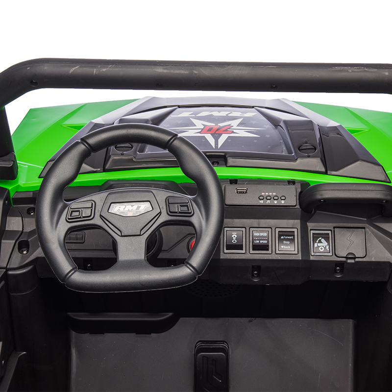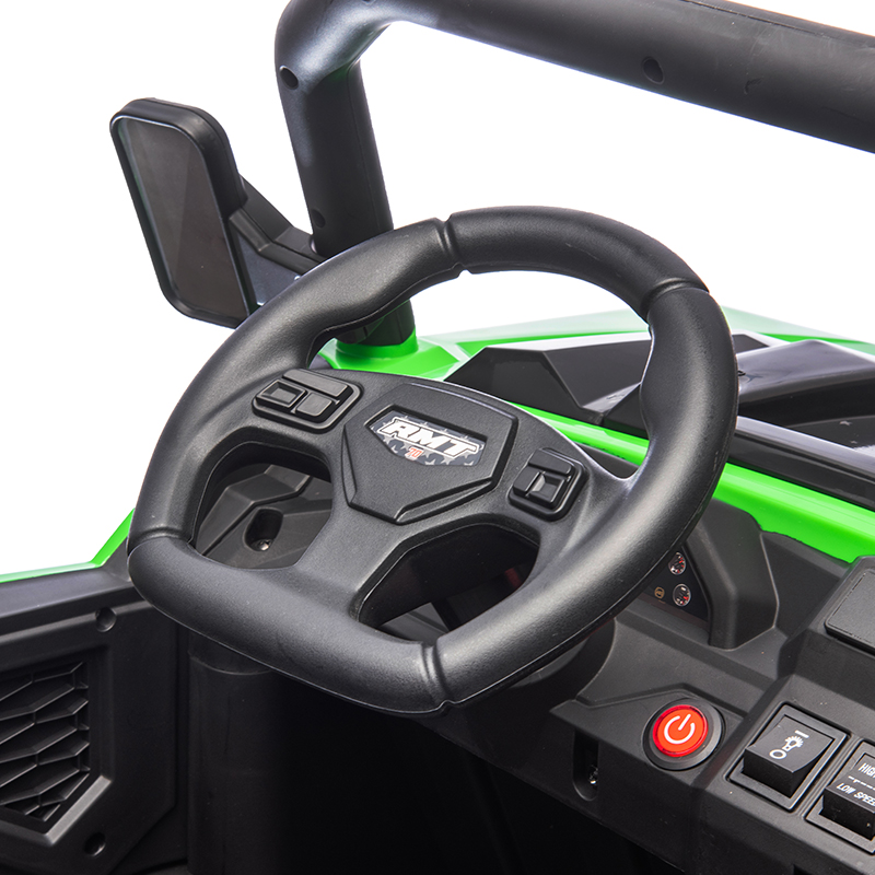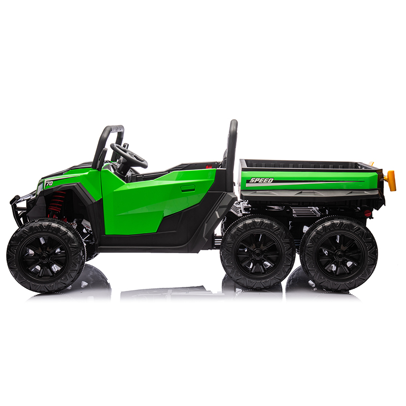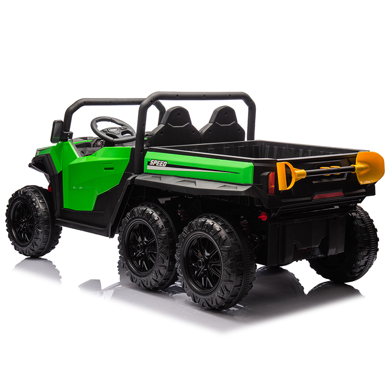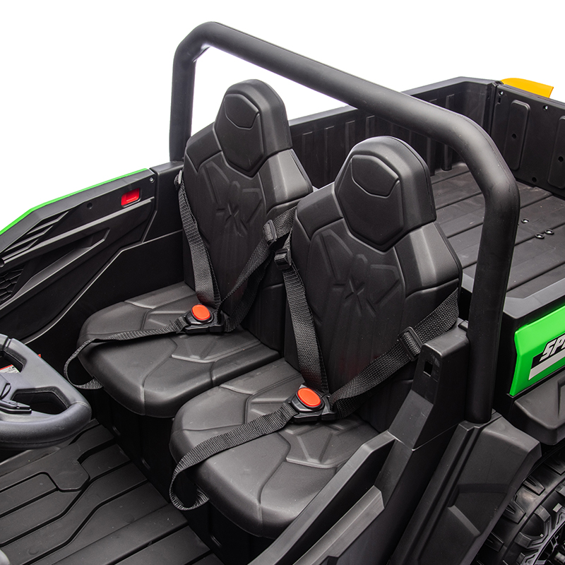 2 seater electric off-road UTV is not just an ordinary kid’s electric car. It comes with lifting dump bed, shovel, Bluetooth and music player to bringing more fun and creativity to your little one’s riding.