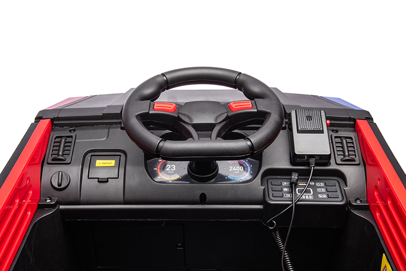 2 seater ride on car has two driving modes. One is the manual mode, children can drive the electric fire truck by controlling the steering wheel and the foot pedal(2 speed shifting). Second is the parent control mode, parent can operate the electric fire car with remote control to play with their little one (3 speed shifting).