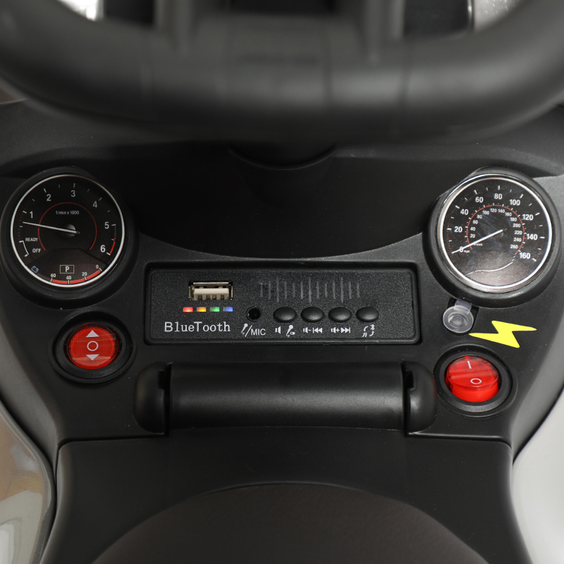 To make the rides even more lively, the 4-in-1 R/C Electric 6V has a USB port and Bluetooth connectivity, allowing children to listen to their favorite songs while having fun. The interactive steering wheel features a horn and a music selector, making playtime even more engaging.