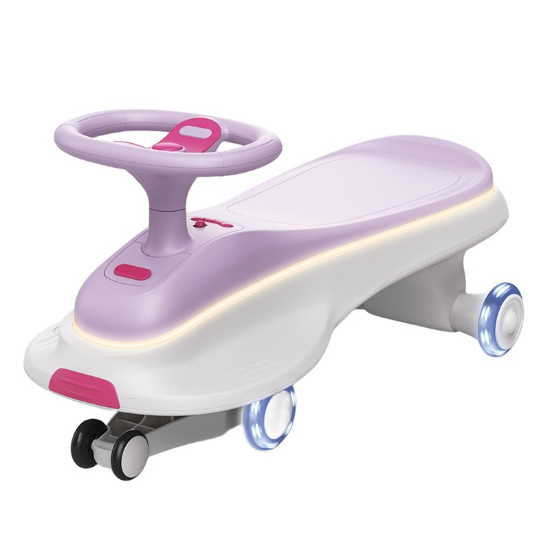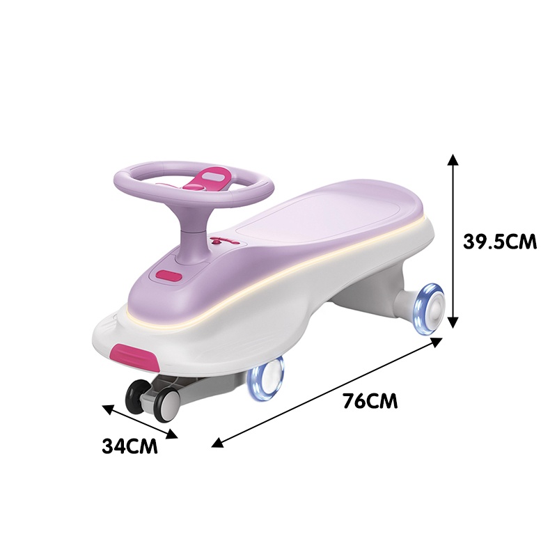 Our swing car is suitable for both indoor and outdoor use. Equipped with wear-resistant PE wheels, our swing car will not damage floors. Also kid will have a quieter and smoother riding experience. Flashing wheels make every ride cool and colorful, which increase the interest of kids.