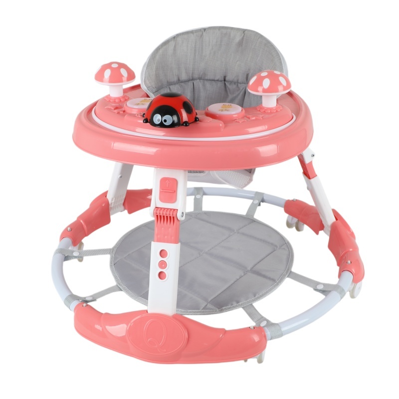 The baby Walker can be folded down and fold flat, Installation Free. It is a small size and easy to carry and store.