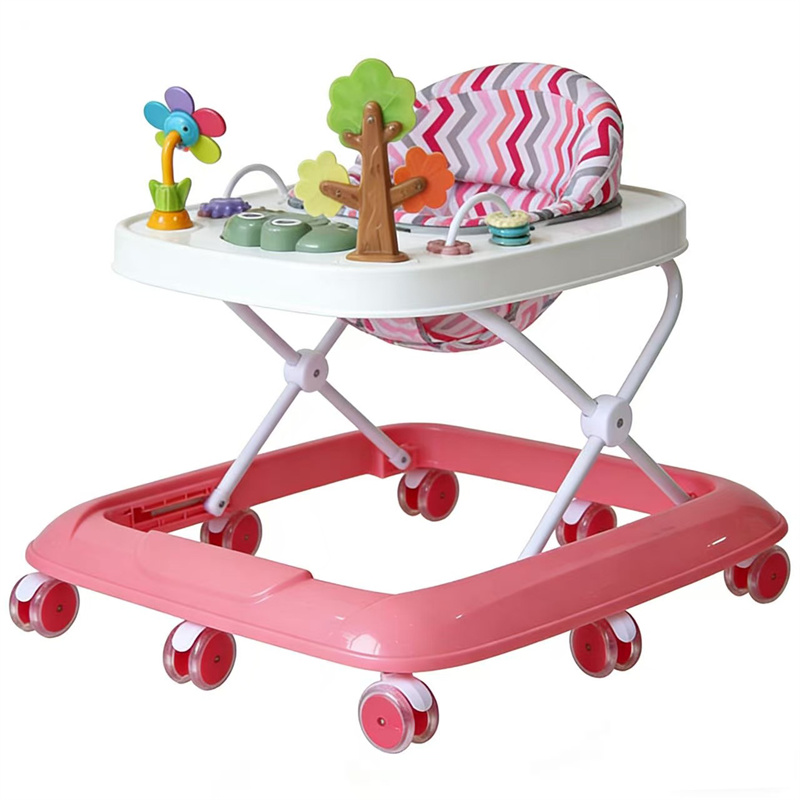 The baby Walker can be folded down and fold flat, Installation Free. It is a small size and easy to carry and store.