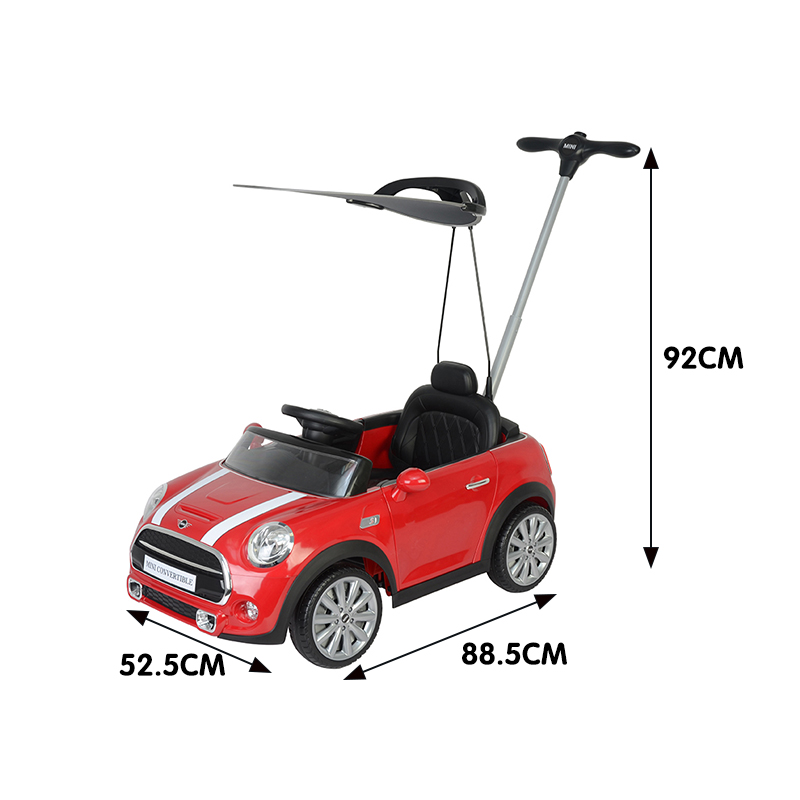Function | With BMW Mini License, 2 In 1 Function,Can Push and Slide,With Flexible Pedal,With Music,Flexible and Removable Push Bar,Two Doors Open,Push Bar Can Control Steering,With Canopy |
