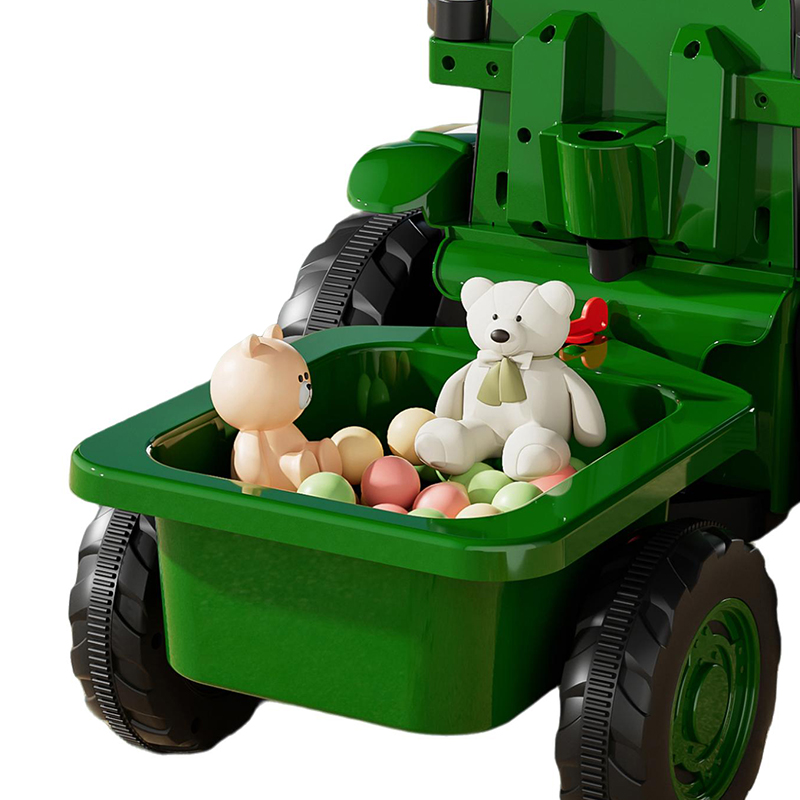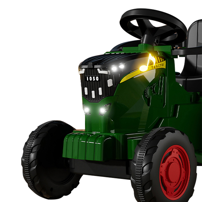 This ride-on tractor is equipped with a robust 12V battery, providing ample power for extended playtime. Kids can explore their surroundings and enjoy driving without frequent interruptions.