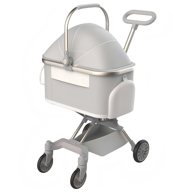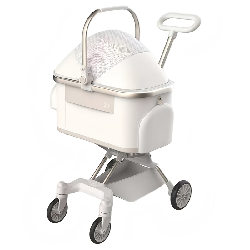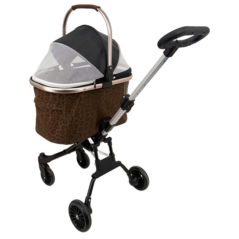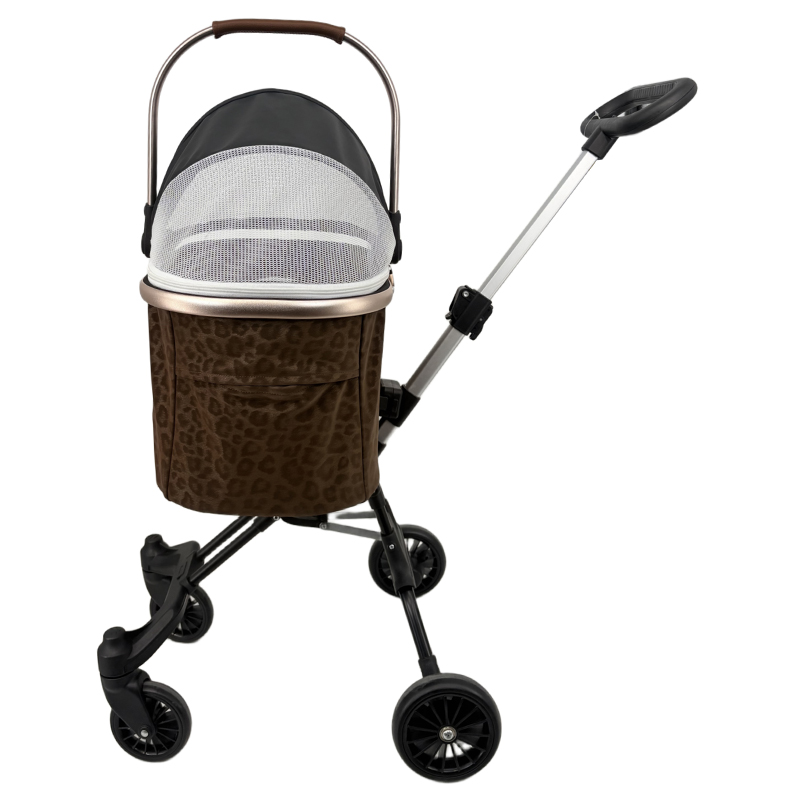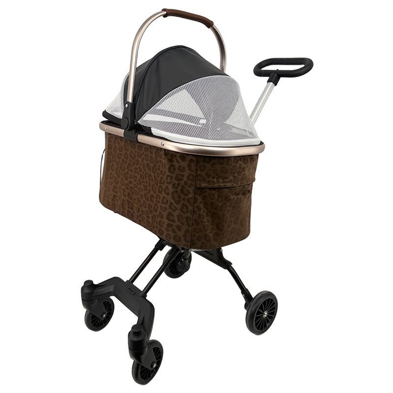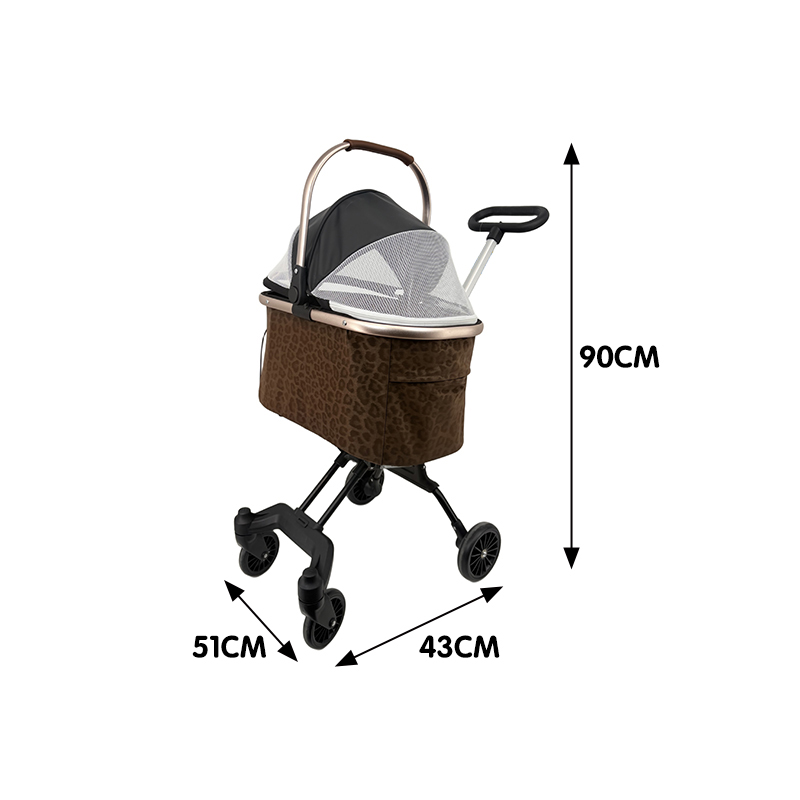 Foldable design, safety leash, brake system, storage compartment, weather cover, mesh windows for ventilation