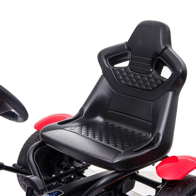 Pedali ispirati alle gare, ruote in gomma e freno a mano a 8 sfere, volante sportivo a 3 punti e telaio in tubo d'acciaio verniciato a polvere.