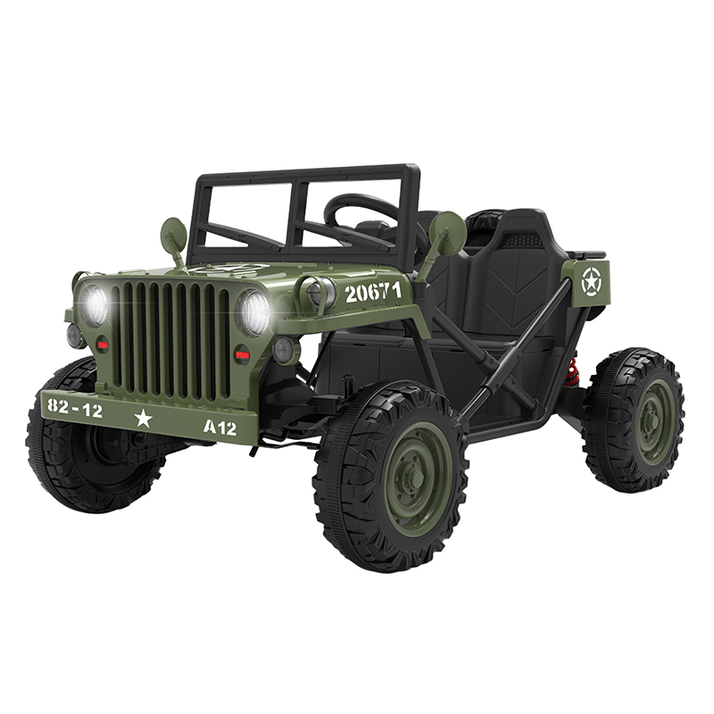 | Function: | True double seat, seat width 51cm, iron frame body, waterproof integrated control panel, forward and reverse, one-touch start, high/low speed, Bluetooth, battery level display, volume adjustment, four-wheel suspension, headlights and light control switch, 2.4G remote control with three-speed adjustment. | ||