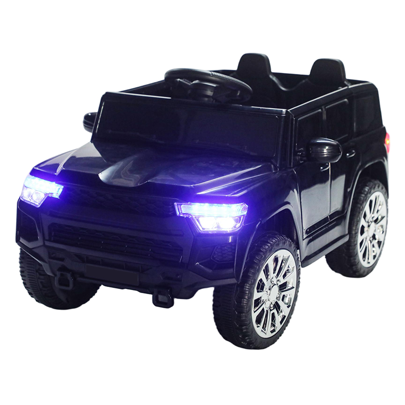 Built-in music and USB port to play your own music, LED lights, forward/backward, turn right/left, Vehicle drives on hard surfaces, grass and other rough terrain,Parent-controlled.