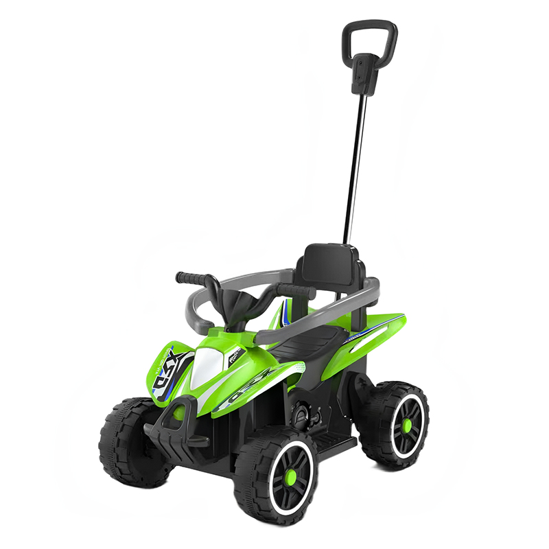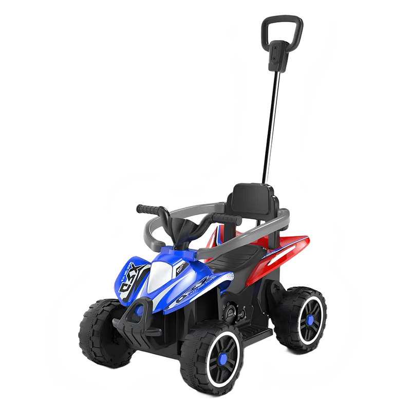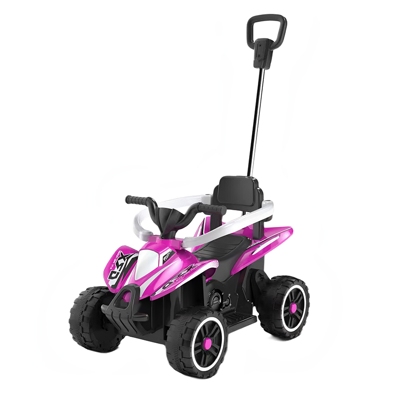 The push car offers a realistic outlook with a colorful design, a steering wheel equipped with horn, music, and light buttons for an engaging play experience.