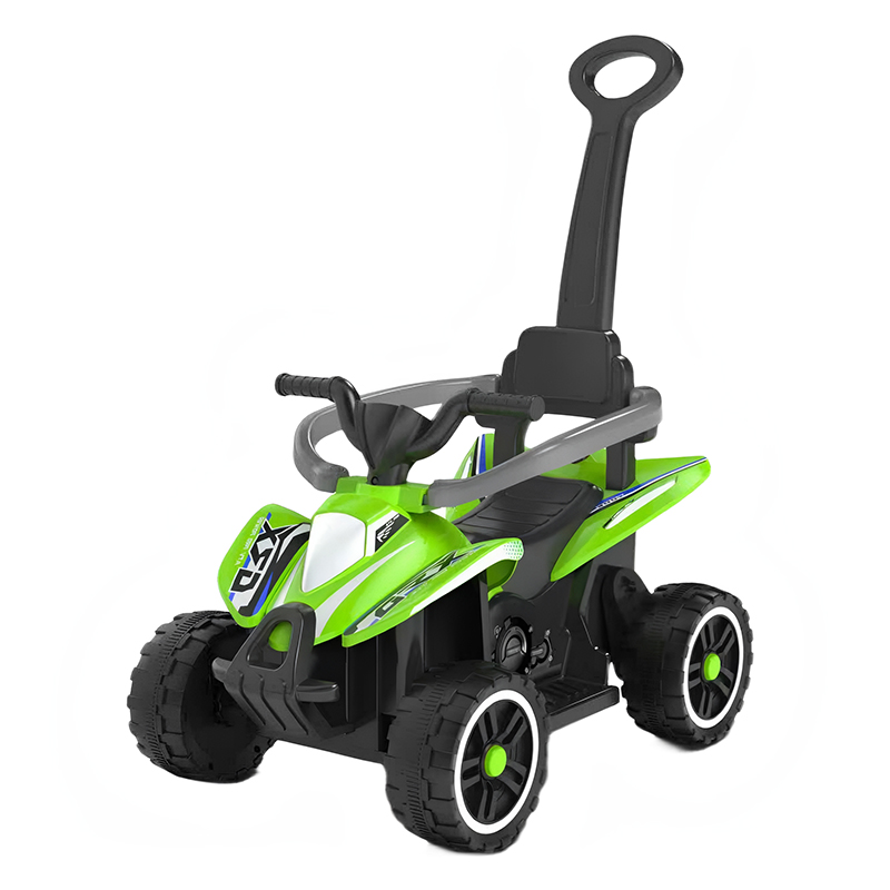 The push car offers a realistic outlook with a colorful design, a steering wheel equipped with horn, music, and light buttons for an engaging play experience.