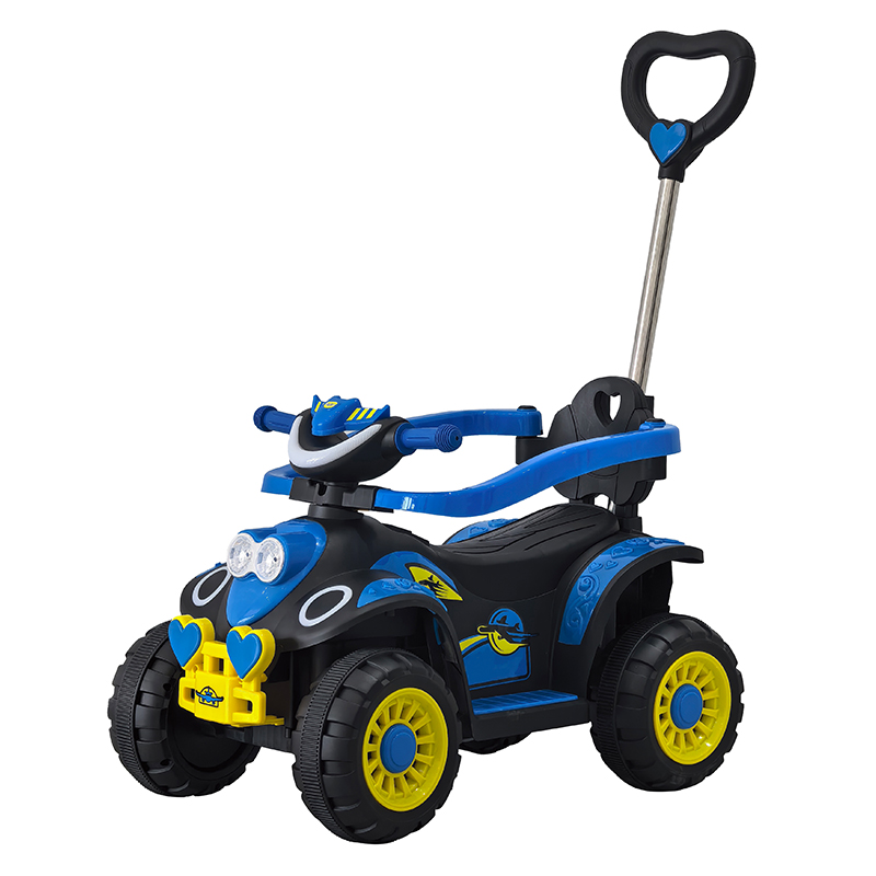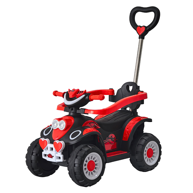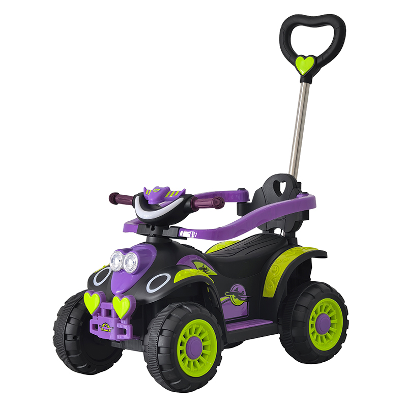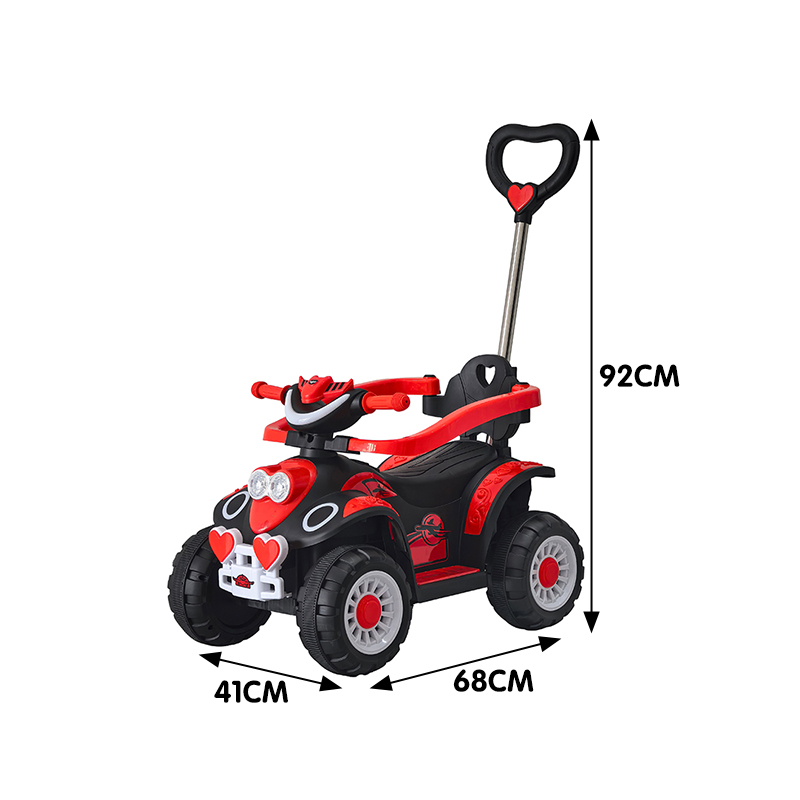 The push car offers a realistic outlook with a colorful design, a steering wheel equipped with horn, music, and light buttons for an engaging play experience.