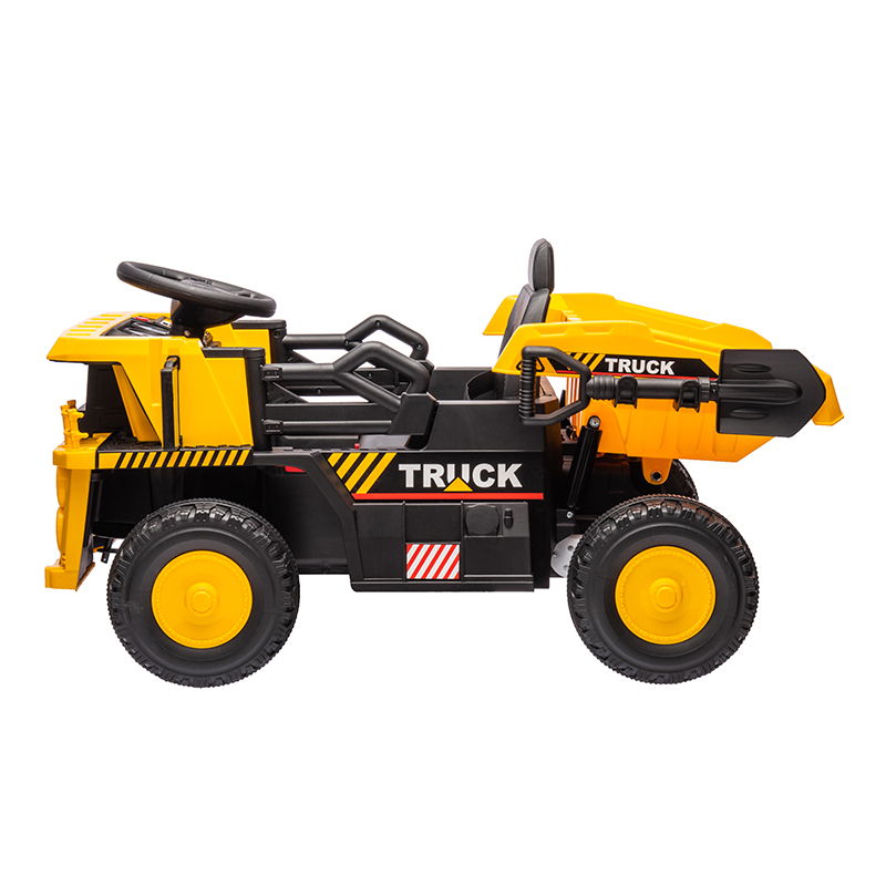 Conforms to American Society for Testing Materials of toys (ASTM F963 standards). This ride on truck features a slow start function to avoid the risk of sudden acceleration. With protective armrest, seat belt and 4 wear-resistant wheels, this electric vehicle offers comfortable and safe driving experience. The child on the co-pilot can also hold the handle beside the steering wheel to increase stability.
