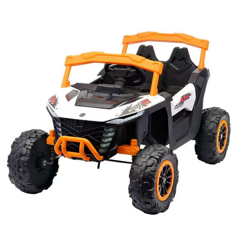4 large simulation solid off-road wheels are designed with spring decompression shock absorbers, suitable for various road conditions such as steps, ramps, beaches, stones, lawns, etc; This ride on car toy not only bring kids an exciting & a real driving experience, but a comfortable feeling