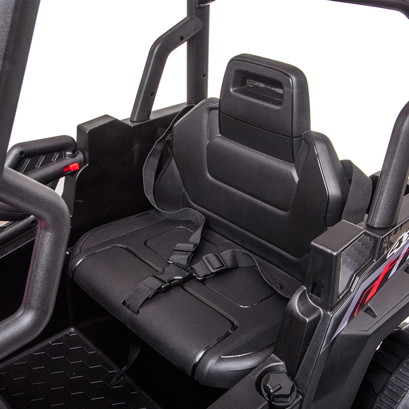 Adjustable seat belt, parental remote control keep kids safe. The four large wheels with suspension can adapt to any flat road. The groove at the bottom of the car is used to move the car manually to prevent running out of electricity.