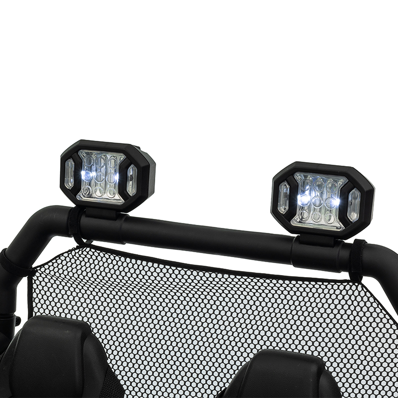 Built-in music and USB port to play your own music. Built-in horn, LED lights, forward/backward, turn right/left, brake freely; real car engine sound, Vehicle drives on hard surfaces, grass and other rough terrain,Parent-controlled, high-speed lock out and Power-Lock brakes.