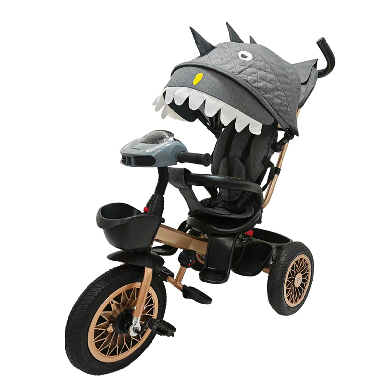 | Function: | With Dino Design Canopy,Tubeless Wheel,12′-10′,front wheel with clutch,music and light,seat 360 rotation,three level backrest ,with bluetooth and USB function,1PC/CTN | ||