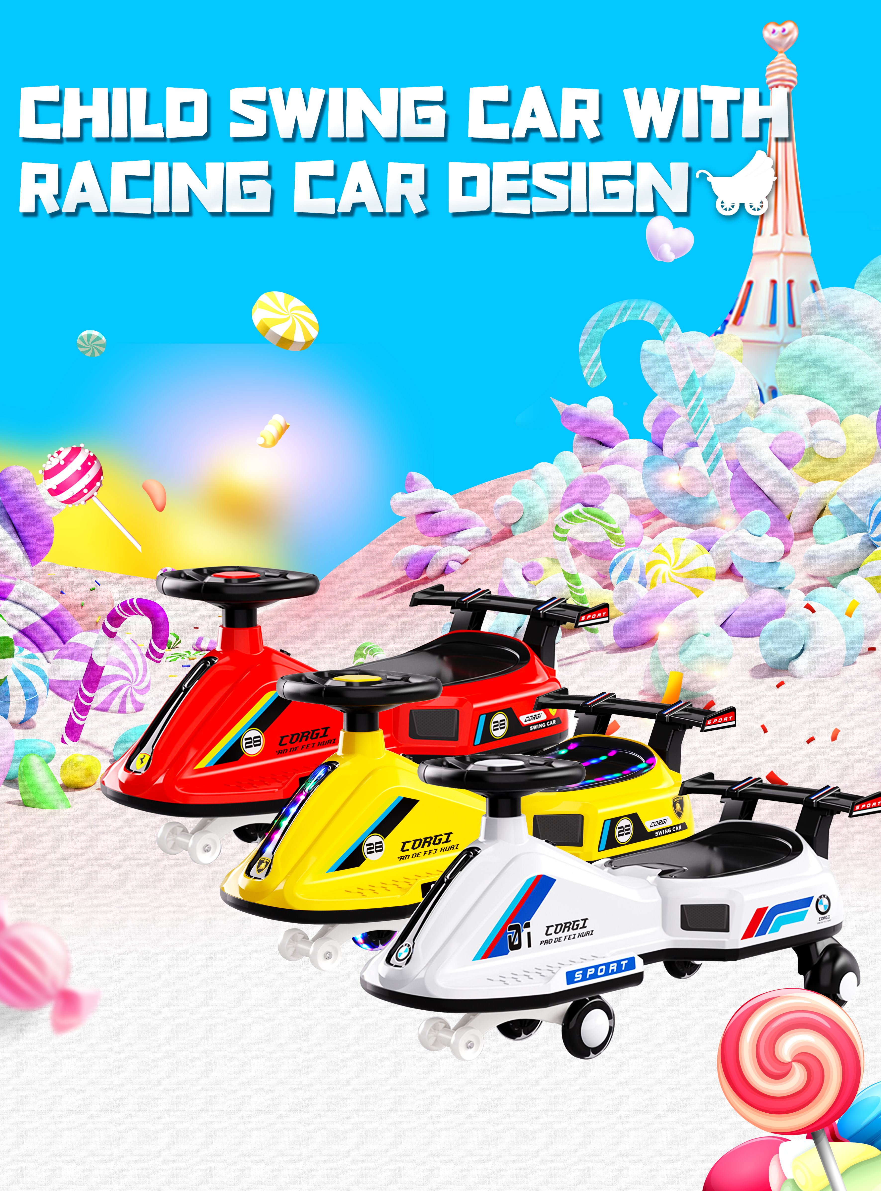 រថយន្ត Swing របស់យើងគឺសមរម្យសម្រាប់ការប្រើប្រាស់ទាំងក្នុង និងក្រៅផ្ទះ។ បំពាក់ដោយកង់ PU ដែលធន់នឹងការពាក់ រថយន្ត swing របស់យើងនឹងមិនធ្វើឱ្យខូចកម្រាលឥដ្ឋឡើយ។ ក្មេងក៏នឹងមានបទពិសោធន៍ជិះស្ងាត់ និងរលូនជាងមុន។ កង់ដែលបញ្ចេញពន្លឺធ្វើឱ្យរាល់ការជិះមានភាពត្រជាក់ និងមានពណ៌ចម្រុះ ដែលបង្កើនចំណាប់អារម្មណ៍របស់កុមារ។