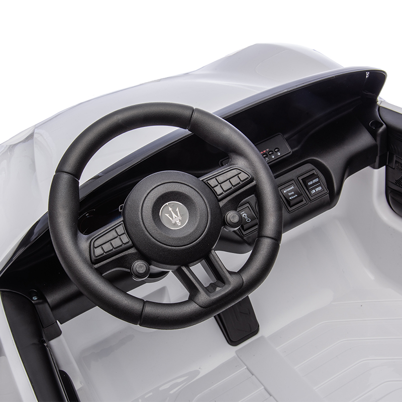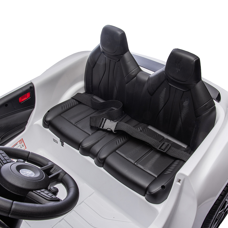 12V Kids Ride on Licensed Maserati has almost restored the real car’s appearance to give 3-6 years little kids a realistic driving experience, and equipped with 12V dual motors power configuration, which can provide stable current on various terrains.