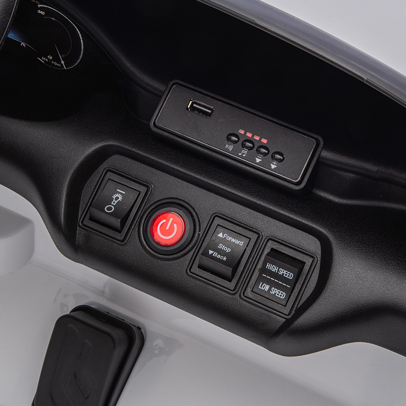 There is a battery indicator on the central control for your convenience to know the remaining battery and charge in time. And it also provides various functions, Music/ FM Radio/ Bright Headlights/ Horn/ Car Start Sound and more, kids can enjoy the fun of lights and music while driving.
