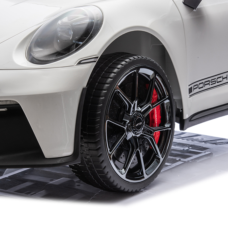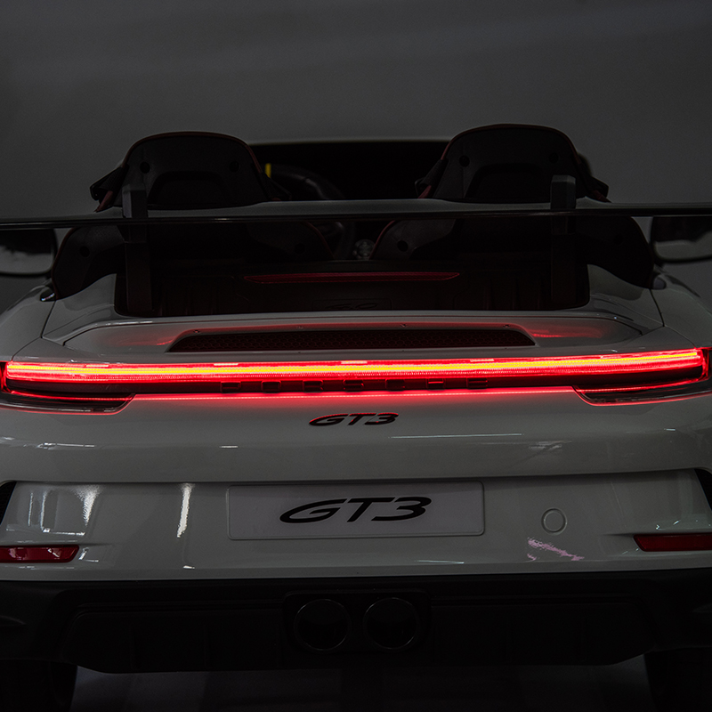 Let your child experience the thrill of driving a Porsche 911 GT3 with this officially licensed electric ride-on car! Designed with realistic details, including a sleek body, dual opening doors, and a sporty rear wing, this ride-on car delivers an ultra-luxurious look. Equipped with 2.4GHz remote control, one-key start, and LED headlights, it offers both convenience and style for young racers.