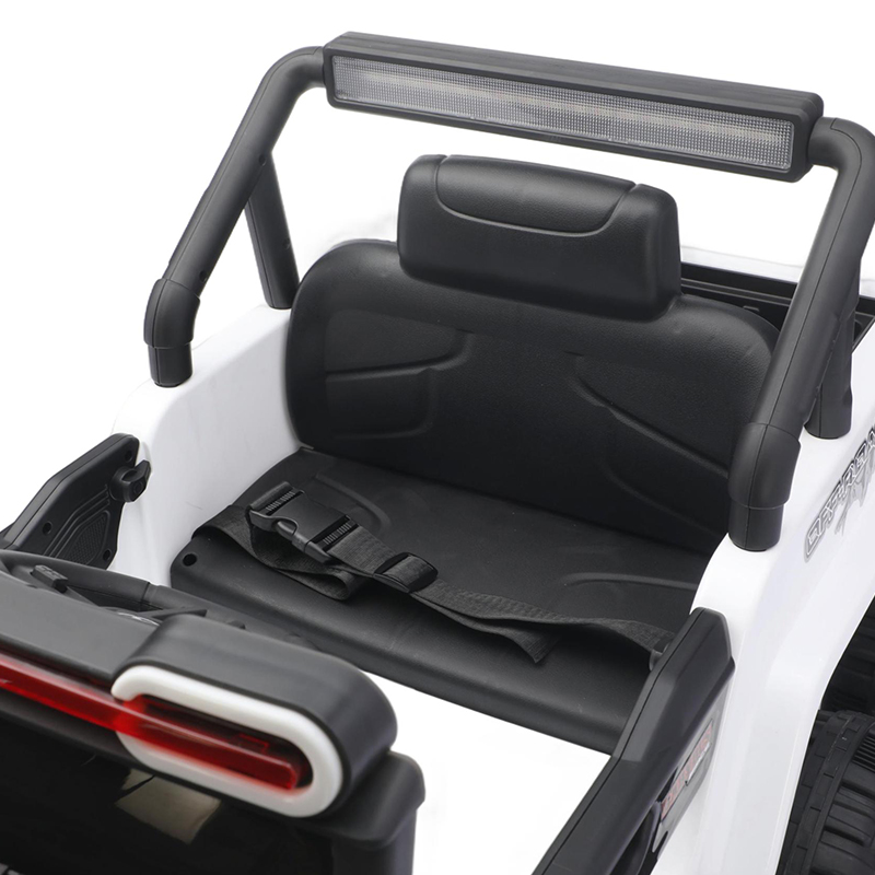 - Front and rear LED lights help little drivers see and be seen, while 6 wheels and four high-torque motors power the car safely and reliably. Soft spring suspension and spacious seat with safety belt provide a cushioned comfortable ride over grass, pavement or light obstacles. More spacious seating space provides children with a more comfortable riding experience.